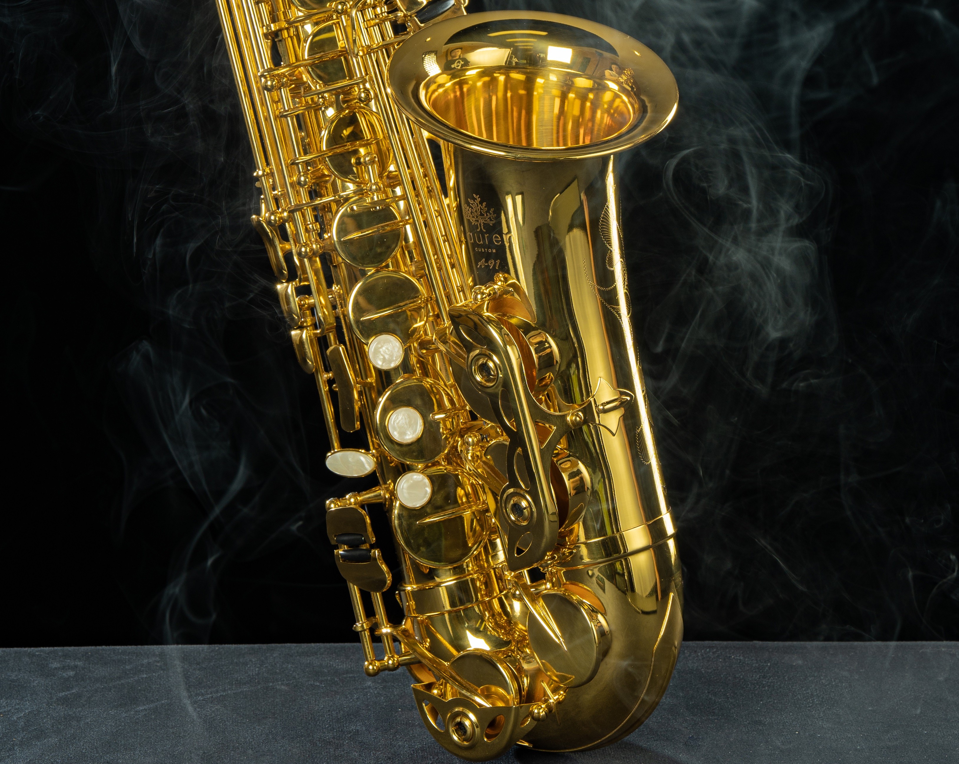 降E调中音萨克斯 出口级黄铜、无铅焊接 802型逆向声学技术 太阳花黄铜反射板皮垫 蓝钢弹针 泳金漆面 ST11定制皮革箱包 随管附带定制笛头、皮革背带、黄铜哨卡、麂皮擦布、专用软木油、食品级牙垫